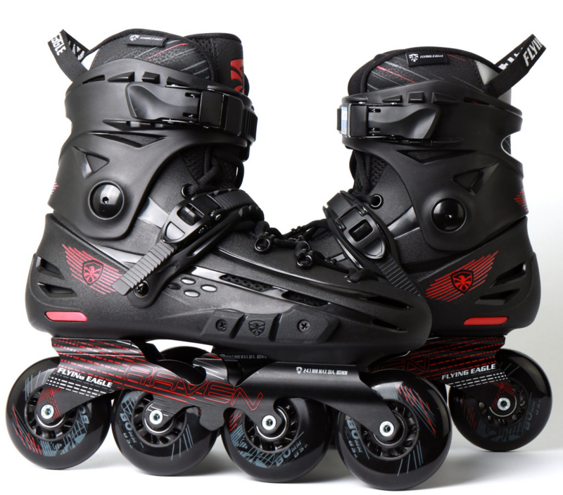 Patin Flying Eagle F4 Raven Negro. Su diseño en lila vibrante y su estructura de alto rendimiento brindan velocidad, control y comodidad. Perfectos para patinadores que buscan agilidad y un toque de color en cada movimiento. Atrévete a volar sobre el asfalto y sentirte libre